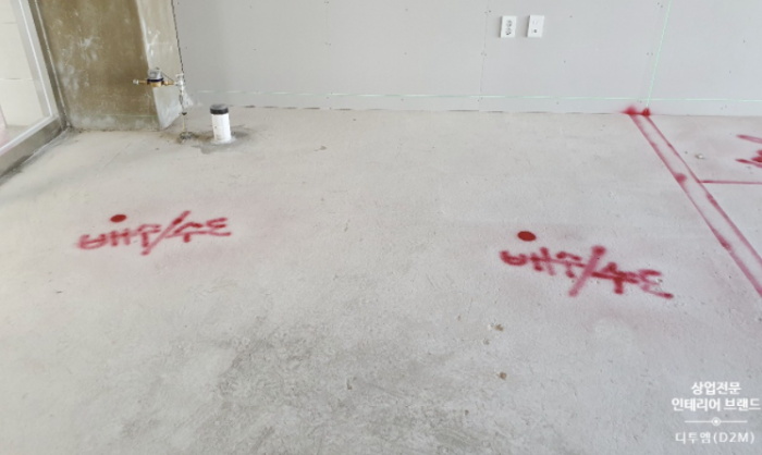 현재 본 공정에 앞서 기본 작업만 진행해둔 부산 미용실 인테리어 현장.